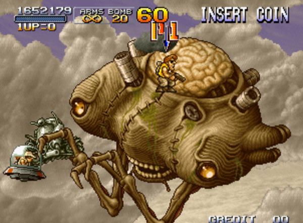 Rush Blast系统:从合金弹头6开始,主角下方会出现一个槽。随着打倒敌人,槽会不断扩充,最多可以攒到4个槽,每加一个槽打败敌人的分数会依次增加,依次为2、4、8、16倍。攒到4个之后,槽会开始慢慢减少,此时打死敌人后分数为16倍,并且敌人会不停地掉金币。使用不同的武器增加槽的速度有所差异。