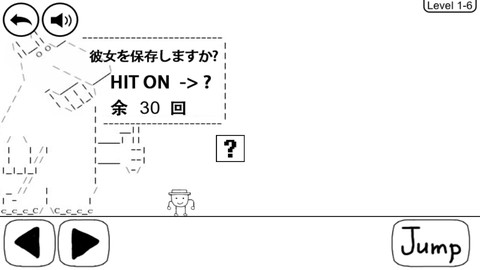 游戏采用了暴走漫画的人物造型,整体风格咋看上去十分粗糙,不过倒是跟游戏的风格很贴切。在游戏中玩家需要操作角色一路排除万难,到达公主身边将其救出。操作方面采用虚拟按键方式,可以控制角色的左右移动和跳跃。在奔向终点的途中,不要用常识性的游戏心态来前进,游戏中各种无节操的陷阱设计会让玩家在大呼坑爹中一次次的失败重头再来。